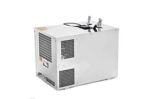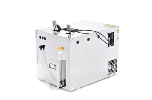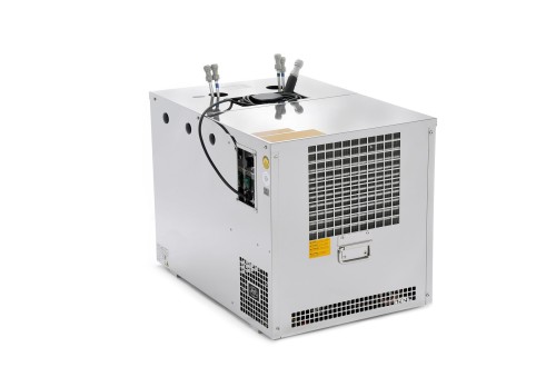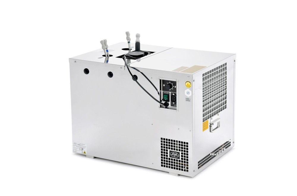 La compattezza, la valvola di scarico per svuotare facilmente l’acqua dall’apparecchio e l’indicatore del livello dell’acqua rappresentano un grande vantaggio. La versione con quattro serpentine di raffreddamento consente di raffreddare contemporaneamente quattro diverse bevande.